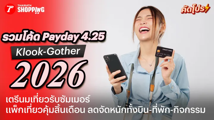 ในเดือนเมษายนนี้แม้ว่าเทศกาลสุดป๊อปอย่าง “สงกรานต์” จะจบไปแล้ว แต่หลายๆ คนอาจจะยังวางแผนเที่ยวต่อในช่วงวันหยุดยาวสิ้นเดือนที่ใกล้เข้ามานี้ ใครที่กำลังมองหาดีลดีๆ โปรโมชันเด็ด บทความนี้ไทยรัฐช็อปปิ้งได้รวบรวมมาให้แล้ว กับโปร Payday 4.25 มีทั้ง Klook และ Gother สามารถกดเก็บคูปองและจองเที่ยวได้เลย ติดตามได้ที่นี่