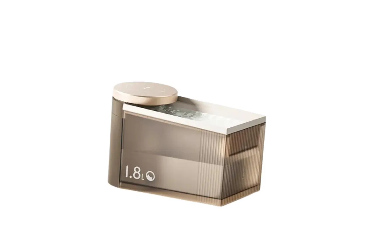 น้ำพุแมวไร้สายจากแบรนด์ VOOCOO ใช้มอเตอร์ปั๊มไร้สายคุณภาพพรีเมียม มาพร้อมระบบแสงฆ่าเชื้ออัตโนมัติในตัว มีโหมดการทำงานให้เลือก 2 โหมด คือ โหมด Auto น้ำพุจะไหลเองอัตโนมัติ และโหมด ECO คือน้ำพุจะไหล 3 นาที ทุกๆ 1 ชั่วโมง จากนั้นน้ำจะไปอยู่ตรงแอ่งพักน้ำ ซึ่งปริมาณถูกคำนวณมาแล้วว่าเพียงพอต่อการกินน้ำของแมวใน 1 ชั่วโมง นอกจากนี้ถังน้ำของรุ่นนี้ถูกออกแบบมาให้มีความลาดเอียง 5 องศา เพื่อให้แมวกินน้ำได้สะดวกขึ้น และบรรจุน้ำได้ 1.8 ลิตร