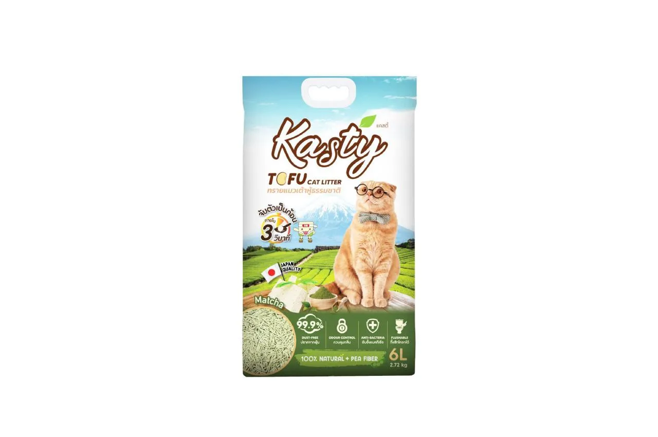 ทรายแมวเต้าหู้แบรนด์ยอดนิยม ทำจากถั่วลันเตา ไม่มีส่วนผสมของกาว ทั้งยังผ่านกระบวนการกรองฝุ่นถึง 3 ชั้น ทำให้ทรายเต้าหู้ Kasty มีฝุ่นน้อยและยังไม่เป็นอันตรายกับน้องแมว เม็ดทรายถูกออกแบบให้มีขนาดเรียวเล็กเป็นพิเศษ จึงจับตัวเป็นก้อนไว นอกจากนี้ยังทำความสะอาดง่าย สามารถตักทิ้งชักโครกได้