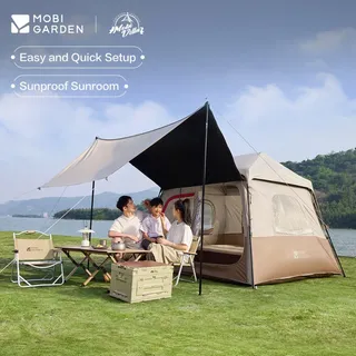 เต็นท์ MOBI GARDEN รุ่น Holiday Mountain Residence 5.9 Lite เต็นท์ขนาดกลางที่สามารถนอนได้ 2-3 คน ทำจากวัสดุผ้าไวนิลคุณภาพดี ทำให้กันน้ำกันแดดได้มีประสิทธิภาพ หลังคาเต็นท์สามารถปรับได้ 4 แบบ จะเปิดเพื่อชมวิวท้องฟ้า หรือจะปิดเพื่อบังแดดก็ได้ โครงเต็นท์เป็นแบบกางอัตโนมัติ ทำให้กางได้ง่าย ไม่ยุ่งยาก ภายในเต็นท์สูง 180 ซม. ให้ความโล่งโปร่งสบาย