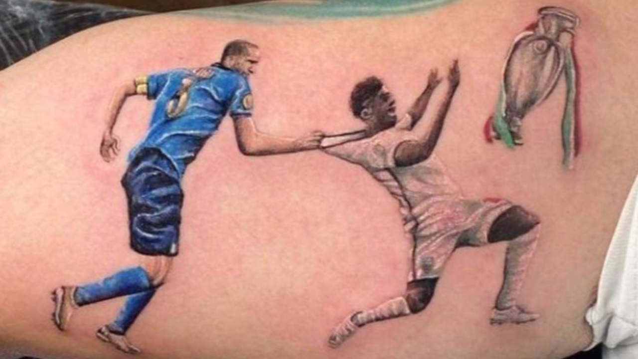 "ช่างสักอิตาลี" สักรูป "คิเอลลินี" ดึงคอเสื้อ "ซากา" ฉลองแชมป์ยูโร 2020