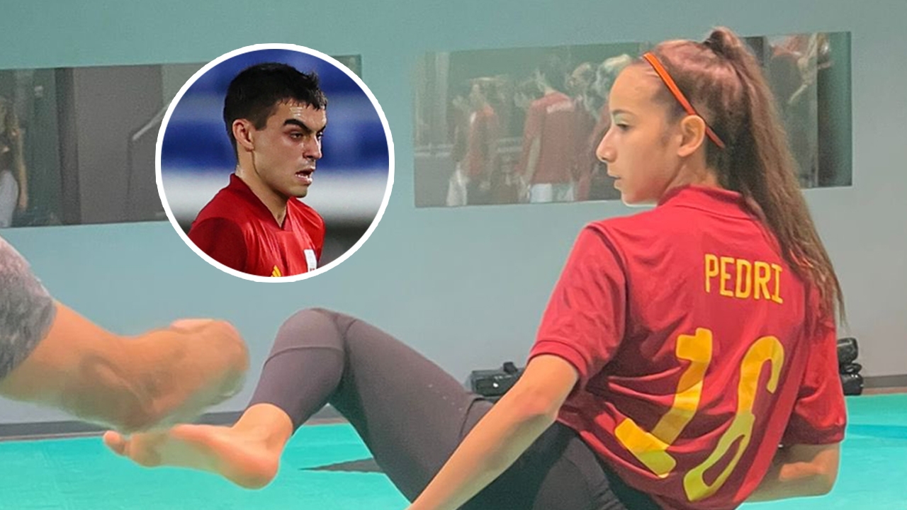 ขอพลัง "คู่แข่งน้องเทนนิส" ใส่เสื้อ "เปดรี" ซ้อมเทควันโด เผยความชอบ "บาร์ซา" (คลิป)