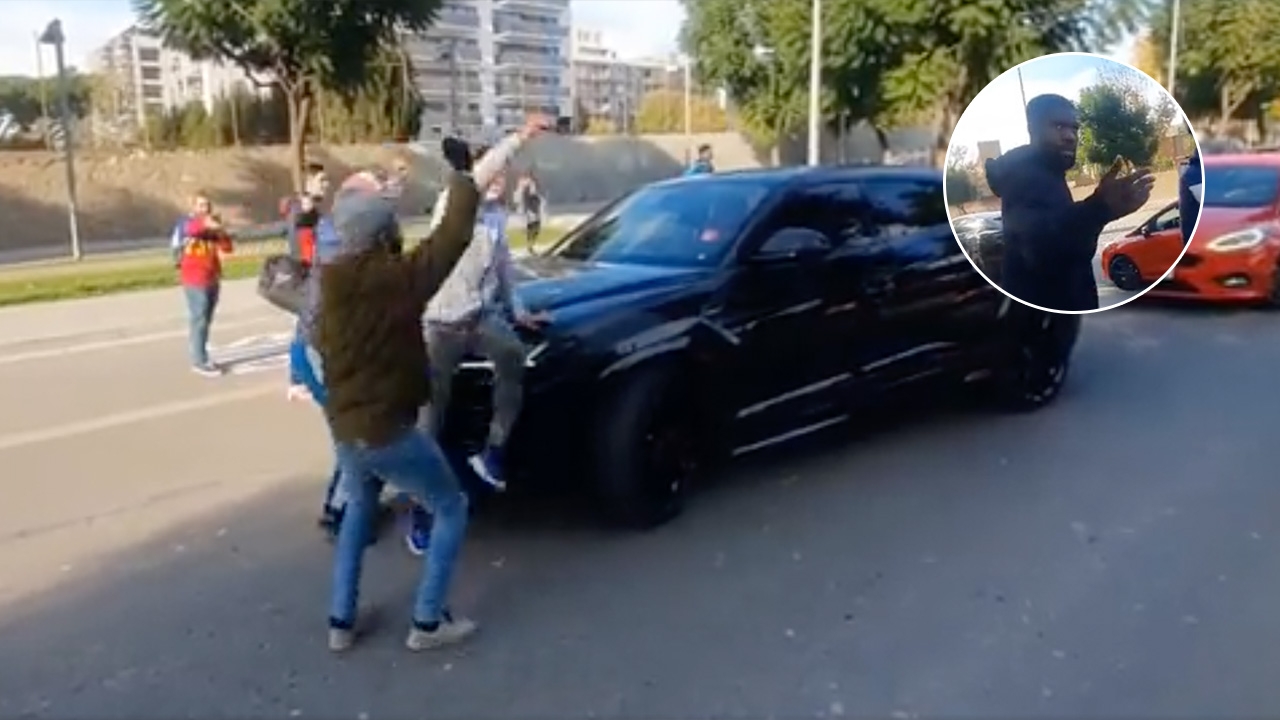 ไม่ไหวแล้ว "อุมติตี" โมโหแฟนบาร์ซาปีนรถ เหยียบคันเร่งขู่-ลงมาเผชิญหน้า (คลิป)
