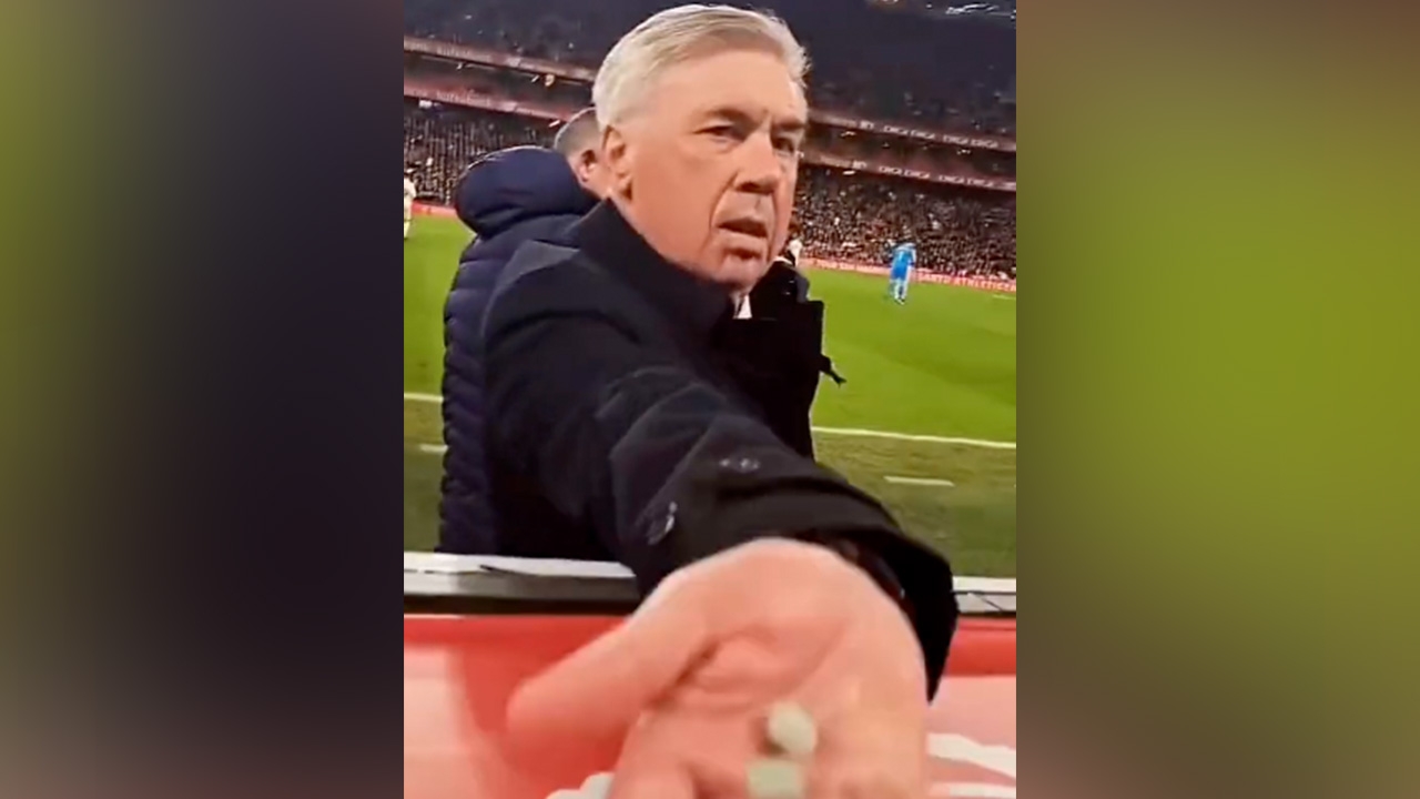 โค้ชน้ำใจงาม “อันเชลอตติ” กุนซือมาดริดฯ แบ่งหมากฝรั่งให้แฟนทีมคู่แข่ง ในเกมลีก (คลิป)