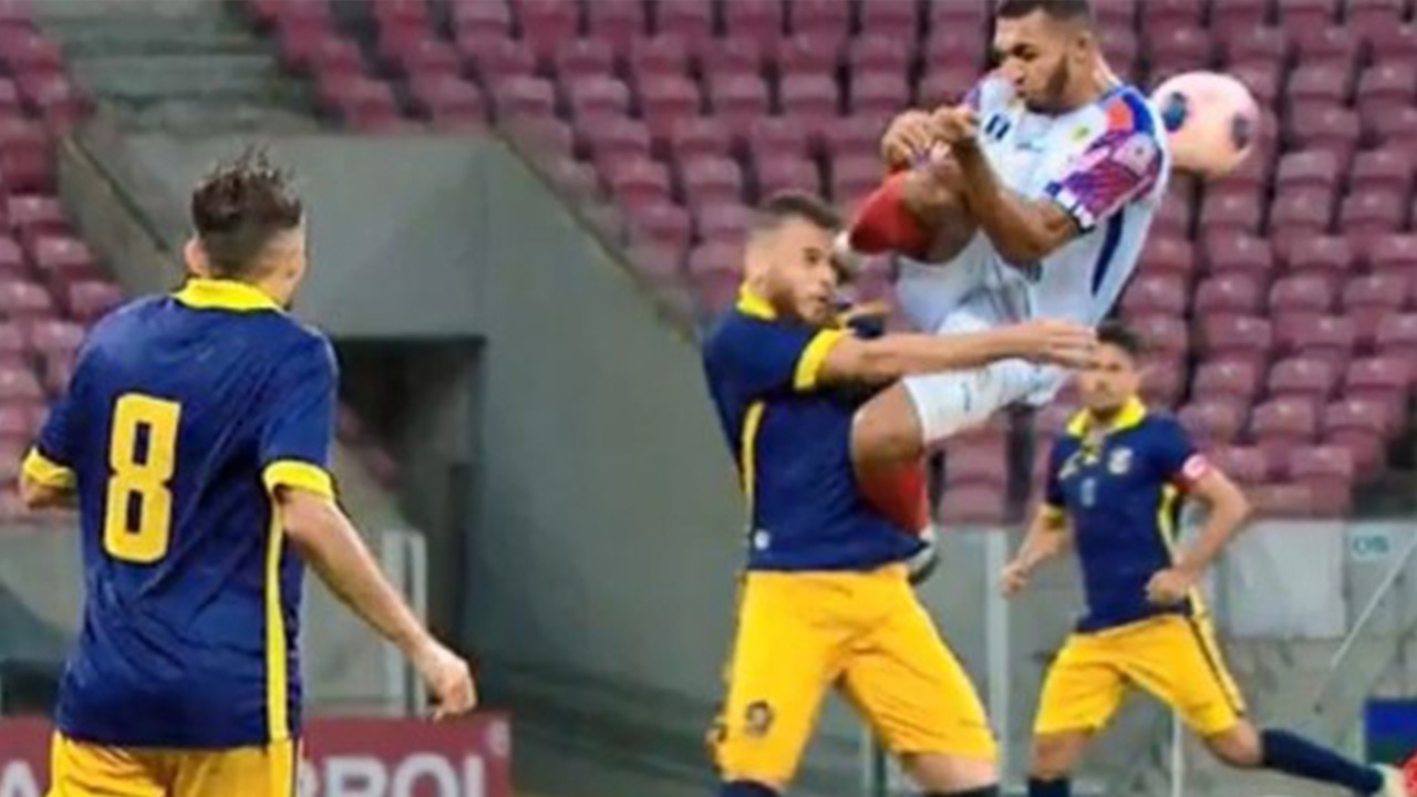 แข้งบราซิล ถีบหน้าคู่แข่งจนเจ็บหนัก แต่กลับได้แค่ "ใบเหลือง" (คลิป)