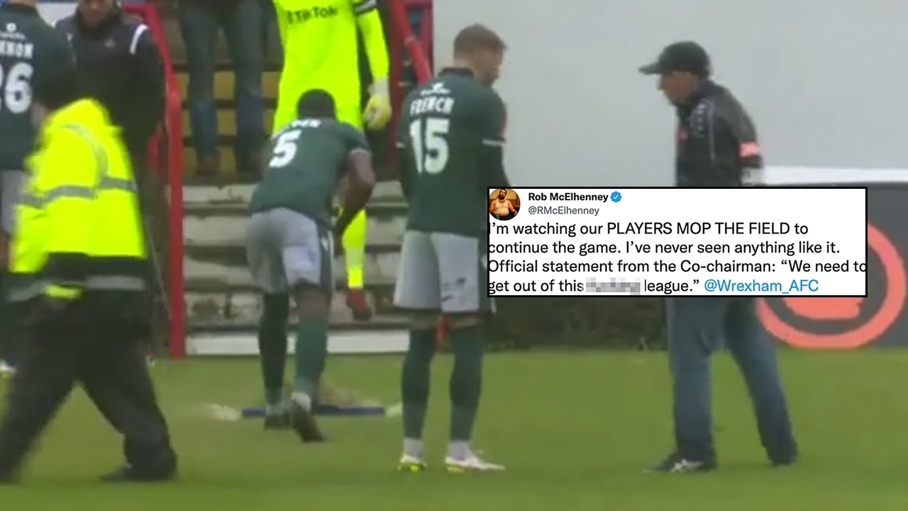 เจ้าของทีมเซ็งฝนตกจนน้ำขัง "เร็กซ์แฮม" เตะไม่จบ ลูกทีมช่วยไล่น้ำก็ไม่ทัน (คลิป)