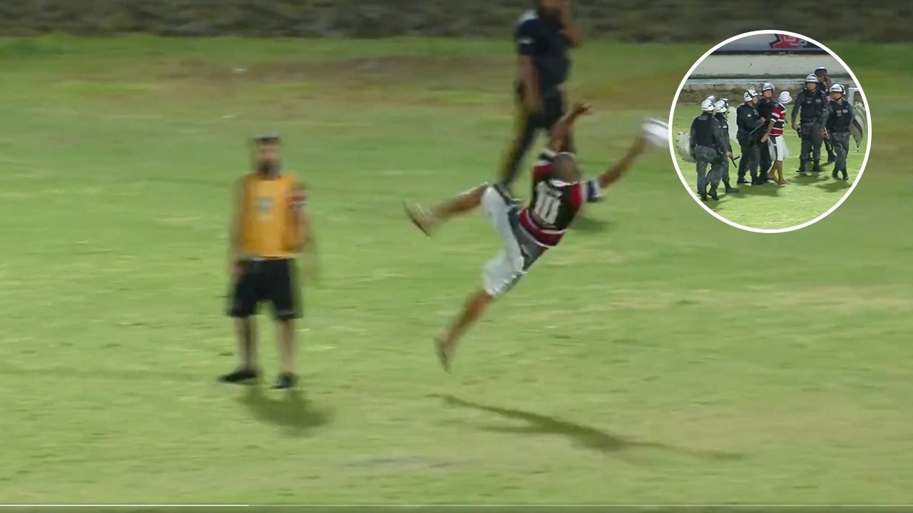 แฟนบอลลีกบราซิล โดนรวบ หลังบุกลงสนาม ไปสอนนายทวารป้องกันประตู (คลิป)