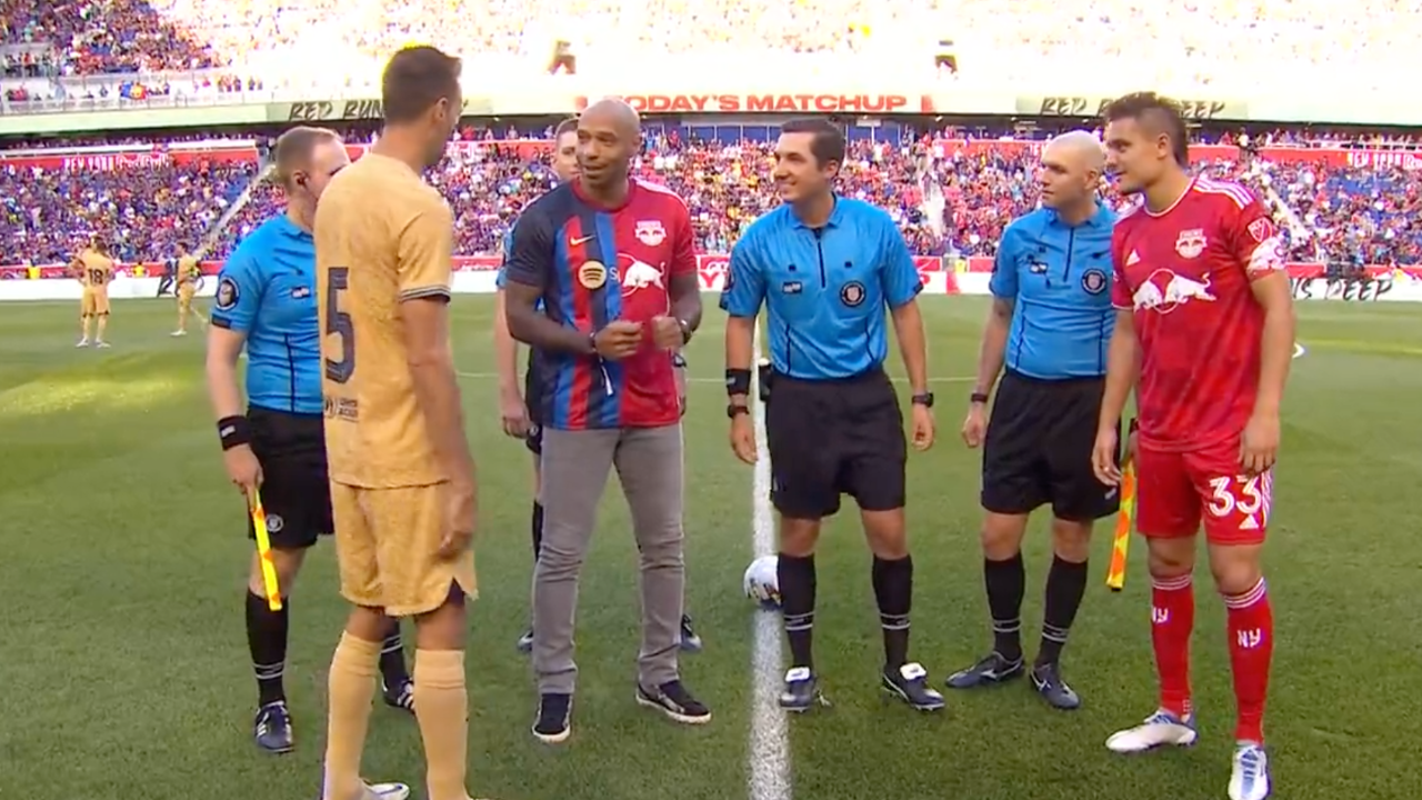 “อองรี” สวมเสื้อ “บาร์ซา-นิวยอร์ก” อย่างละครึ่งลงมาในเกมอุ่นเครื่อง (คลิป)