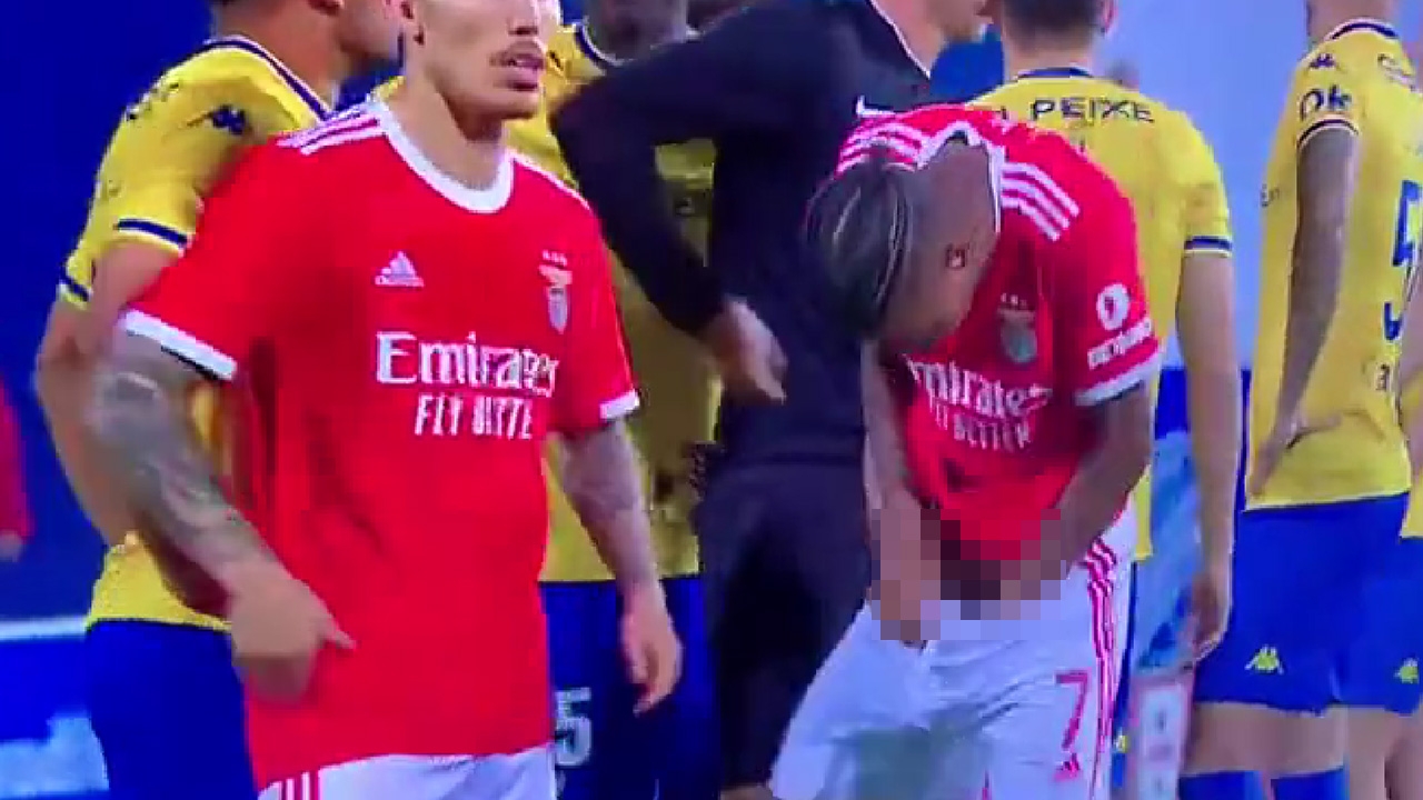 ลืมไปหรือเปล่า แข้ง "เบนฟิกา" เผลอตัวแง้มกางเกงในเช็ก "เจ้าโลก" ออกทีวี (คลิป)