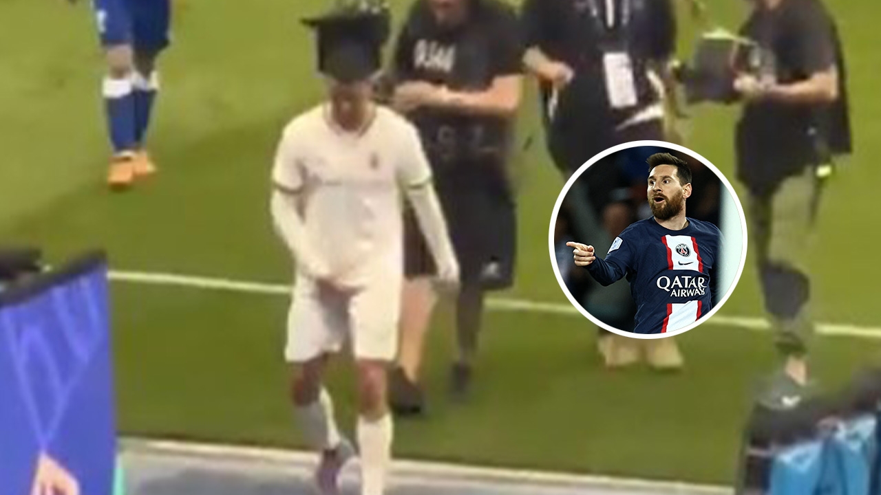 โซเชียลจัดภาพเด็ด "โรนัลโด" ทำท่าสุดทะลึ่งสวนใส่หน้าแฟนบอลตะโกนชื่อ "เมสซี"