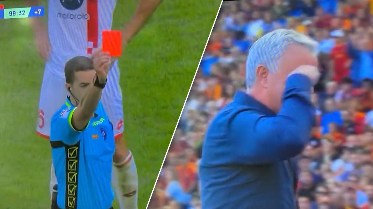 เอาอีกแล้ว "มูรินโญ" ล้อหลอกกุนซือคู่แข่ง แต่ผู้ตัดสินไม่ตลกด้วย ชักใบแดงไล่ออก (คลิป)