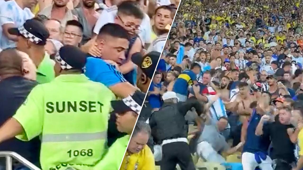 โคตรเถื่อน แฟนบอลบราซิล-อาร์เจนฯ ซัดกันนัว ทำ "เมสซี" อ้าปากค้าง เกมแข่งช้าครึ่งชั่วโมง (คลิป)