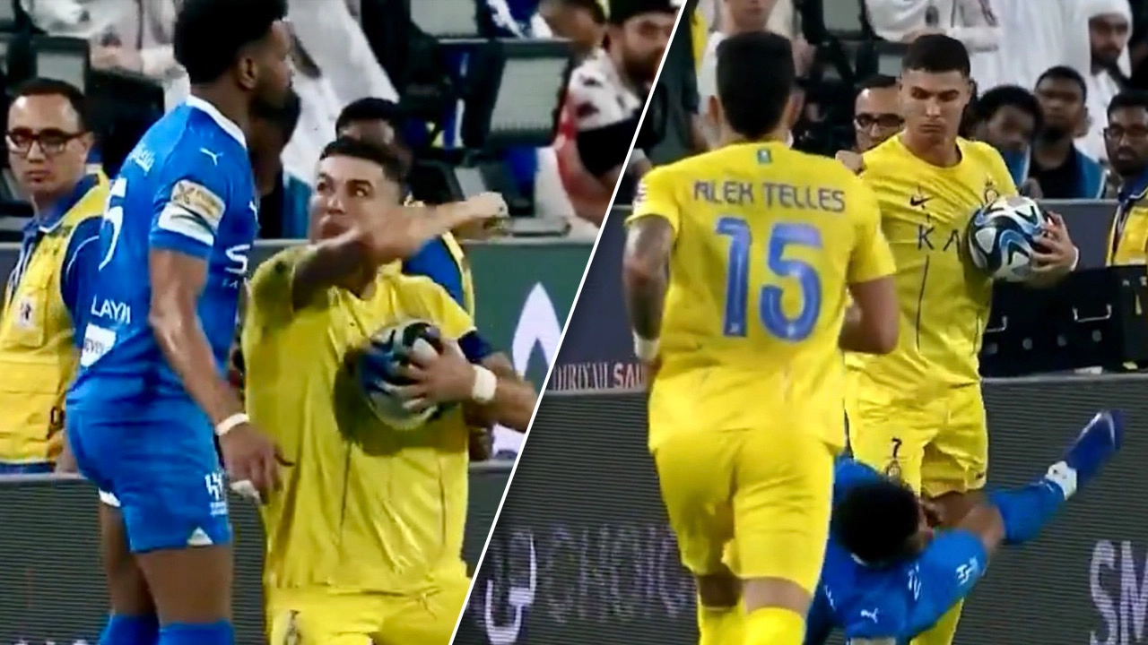 เถื่อนจัด "โรนัลโด" ศอกใส่คู่แข่งล้มทั้งยืน ง้างหมัดใส่ผู้ตัดสินหลังโดนใบแดง (คลิป)