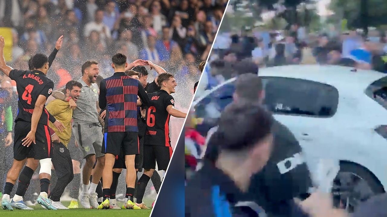 วินาทีชีวิต! รถพุ่งชนแฟนบอลหน้าสนามเกมดาร์บี้ “เอสปันญอล พบ บาร์เซโลนา” เจ็บระนาว (คลิป)