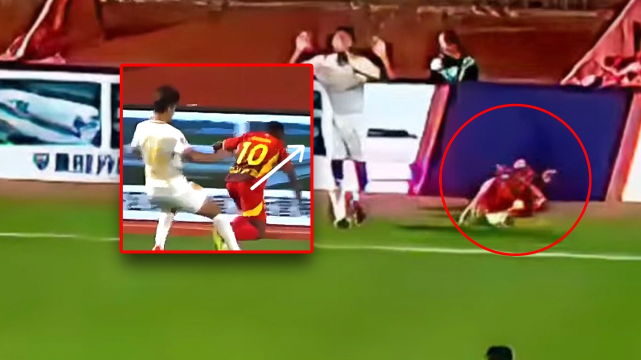 "แข้งลีกจีน" ส่อแววเป็นอัมพาต หลังโดนคู่แข่ง ผลักชนป้ายโฆษณาข้างสนาม (คลิป)