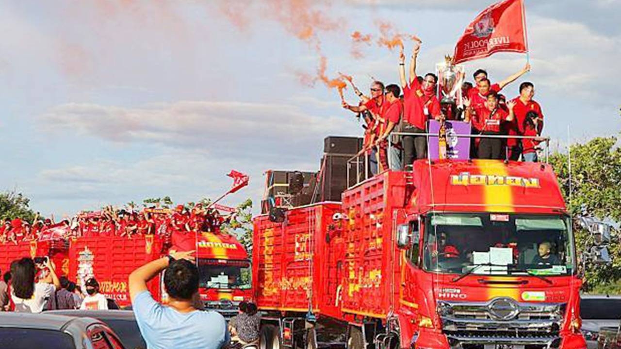 พะเยาสะเทือน "สาวกหงส์แดง" ร่วมขบวนแห่ฉลองแชมป์ด้วย 10 ล้อพ่วง