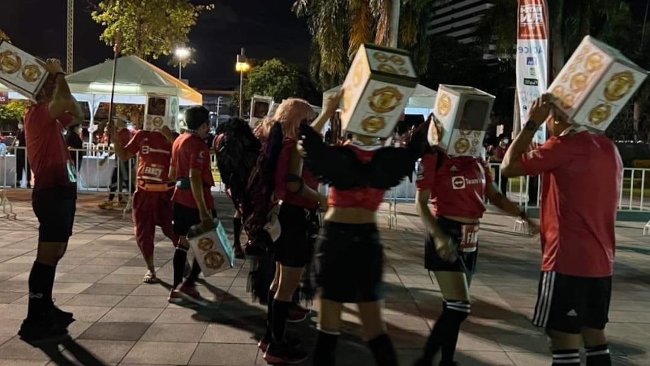 วิจารณ์สนั่น เด็กหงส์กลุ่มหนึ่ง ใส่เสื้อแมนยูฯ ปลอม-เอาปี๊บคลุมหัว งานวิ่งแดงเดือด