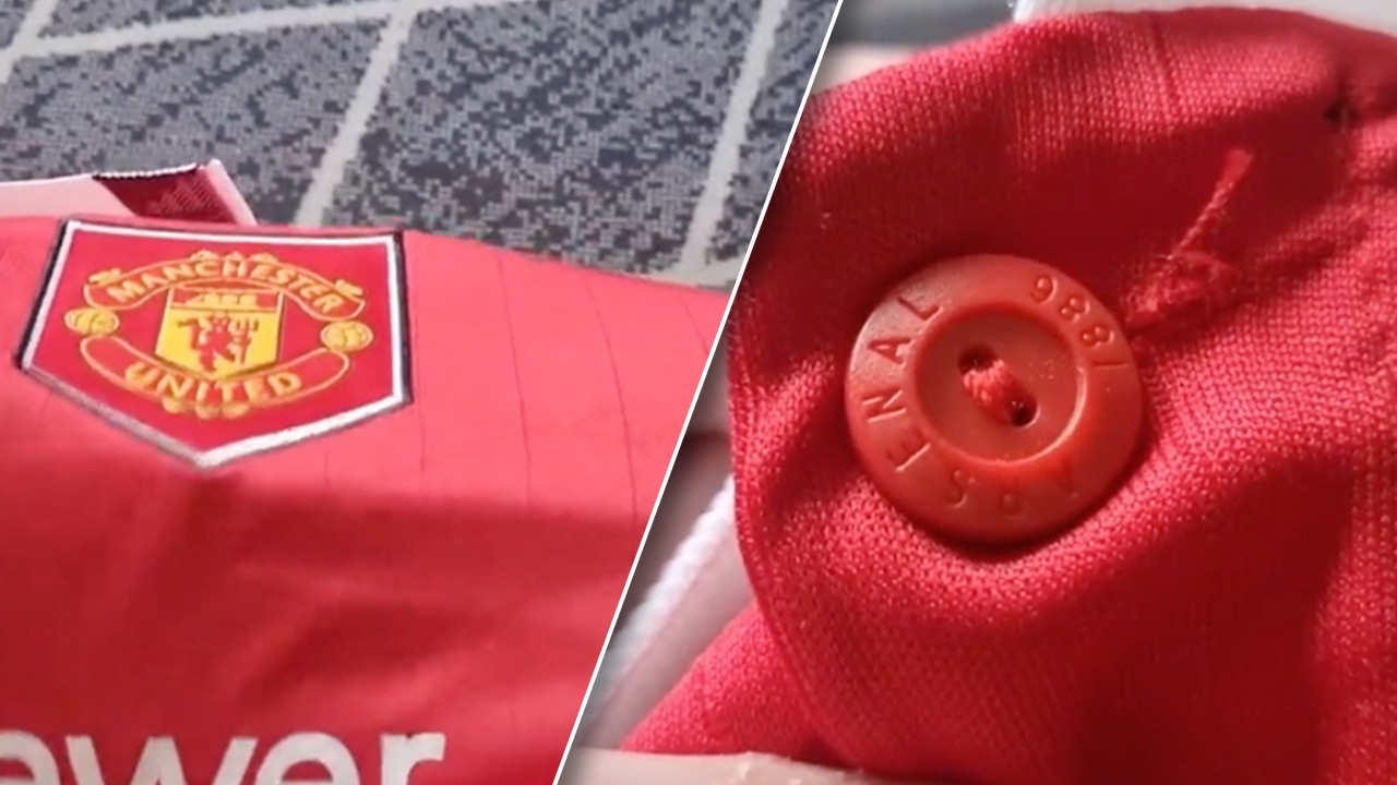 สั่งของแท้ได้ของปลอม? แฟนบอลซื้อเสื้อ "แมนยูฯ" แต่มี "กระดุมอาร์เซนอล" (คลิป)
