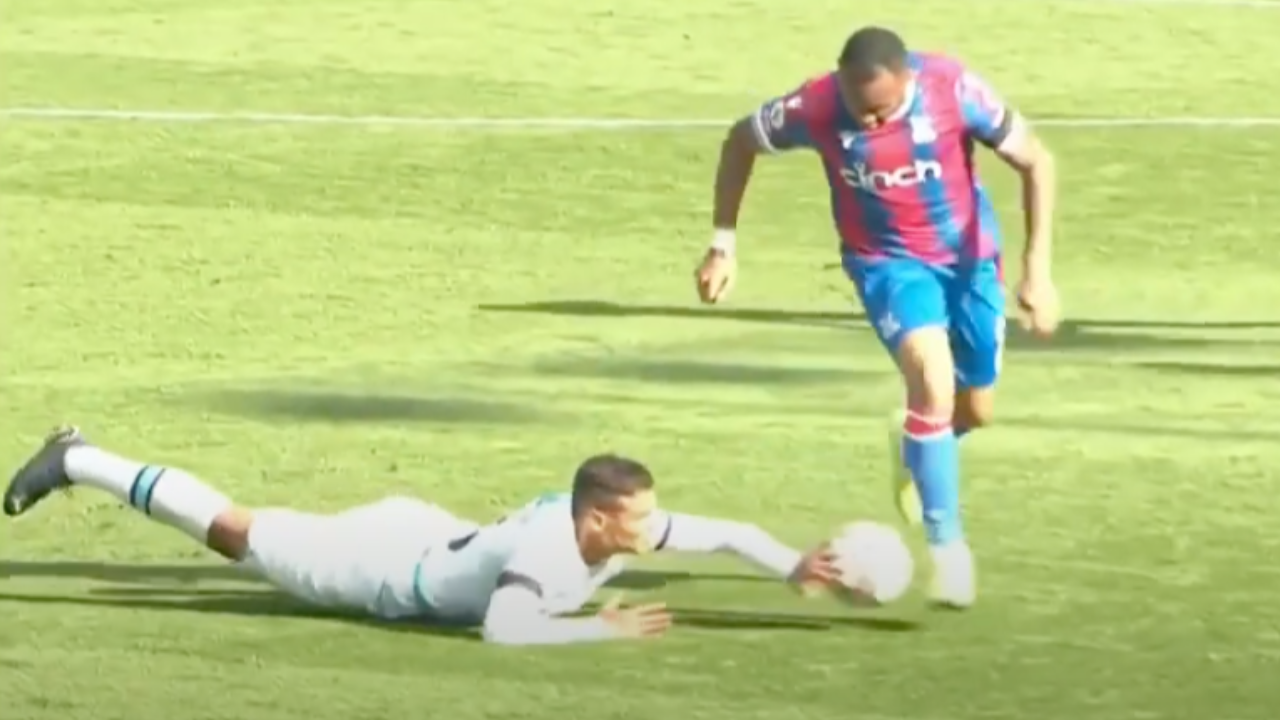 ปธ.พาเลซ งงเป็นไก่ตาแตก "ซิลวา" อยู่ตัวท้าย นอนใช้มือปัดบอล รอดโดนใบแดง (คลิป)