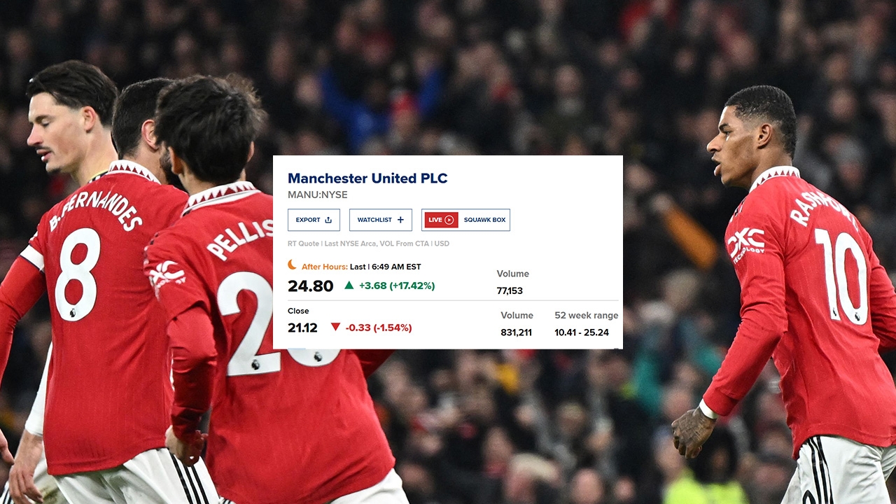 นักลงทุนตื่นตัว เผย "หุ้นแมนยูฯ" ขึ้นแรงมาก หลังข่าว "กลุ่มทุนกาตาร์" จ่อซื้อทีม