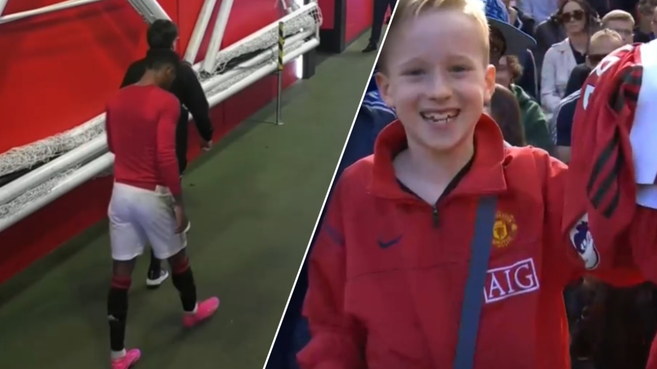ของขวัญเล็กๆ "แรชฟอร์ด" ถอดเสื้อแมนยูฯ ราคาหลายพันให้แฟนบอลรุ่นเล็กที่ใส่เสื้อรุ่นโบราณ