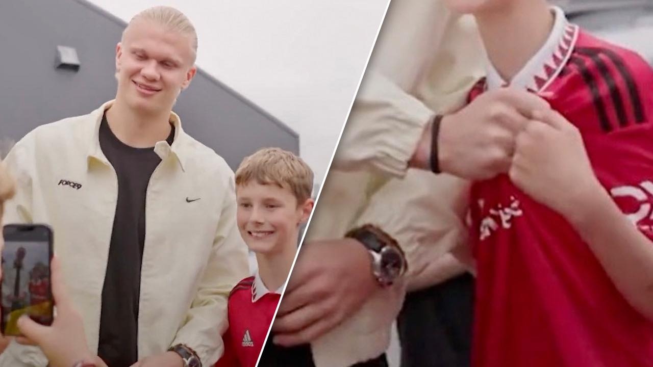 ดีที่เห็นก่อน "ฮาลันด์" แก้ไขปัญหาเฉพาะหน้าเสี้ยววินาที หลังแฟนบอล "แมนยูฯ" ขอถ่ายรูป (คลิป)