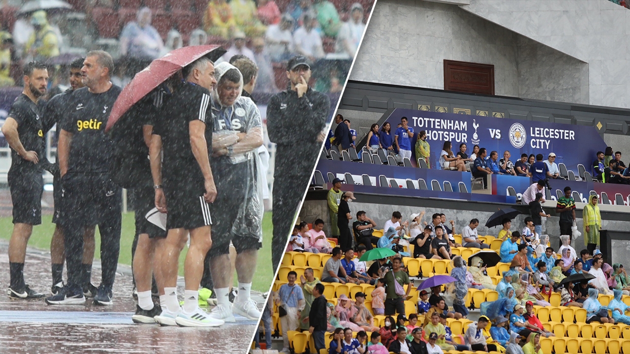 สื่อนอกประโคมข่าว ฝนตก-น้ำขังราชมังฯ ทำ สเปอร์ส-เลสเตอร์ ยกเลิกแข่ง สาวก 2 ทีมถล่มยับ