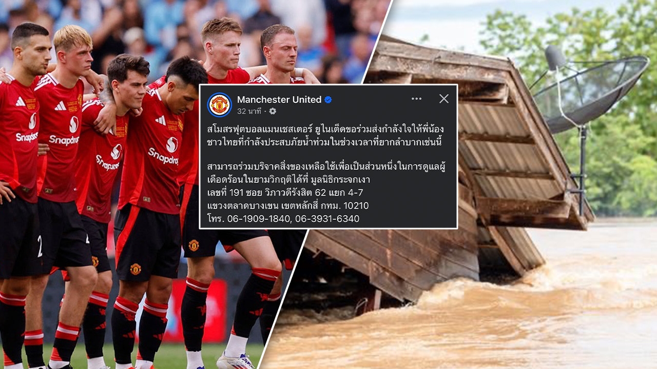 "แมนยูฯ" ส่งกำลังใจให้ "คนไทย" หลังประสบภัยน้ำท่วม ขอให้ผ่านช่วงเวลายากลำบากนี้
