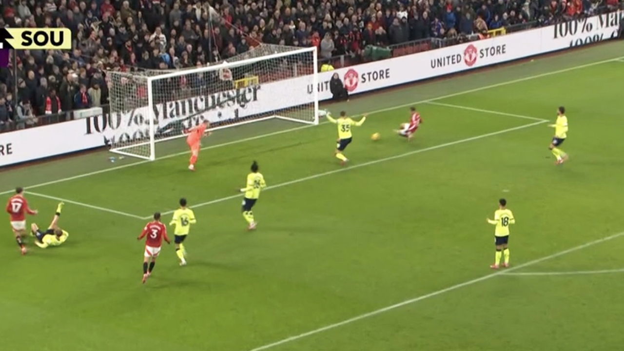 2 หลาก็ยังยิงไม่เข้า! “แอนโทนี” โดนวิจารณ์ดีลยอดแย่ หลังพลาดโอกาสทองเกมพบ เซาแธมป์ตัน (คลิป)