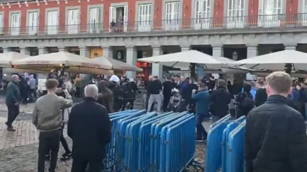 ซัดกันเอง แฟน "เชลซี-แมนฯ ซิตี้" ปะทะเดือดที่มาดริด ก่อนเกมแชมเปียนส์ลีก (คลิป)