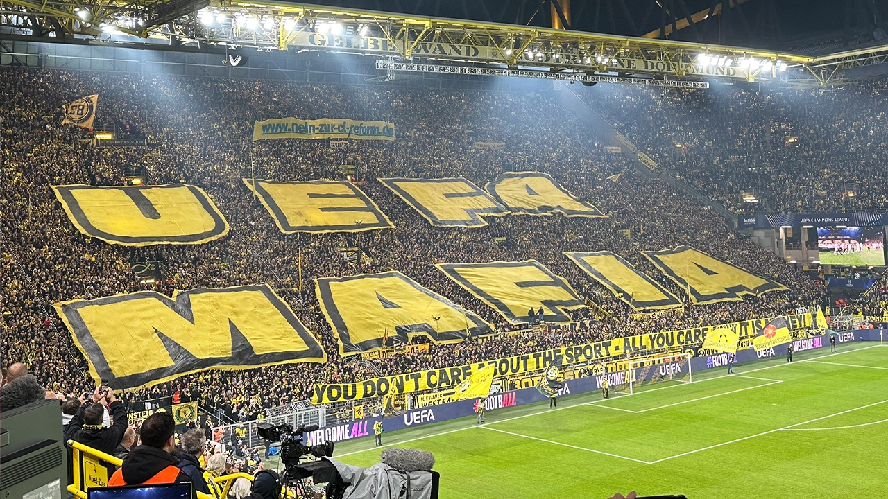 แฟนๆ ดอร์ทมุนด์ ขึ้นป้ายด่า “มาเฟีย ยูฟ่า” ปฏิรูป UCL แข่งเยอะขึ้น ชี้ “สนใจแค่เงิน”