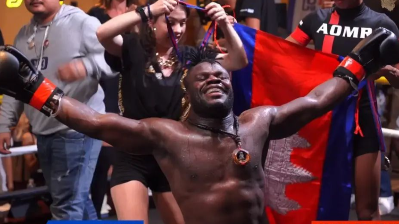 พระเอกกุน ขแมร์คนใหม่ นักชกไนจีเรียน็อกคู่แข่ง ชูธงกัมพูชา ชาวเน็ตเขมรแห่ยกย่อง (คลิป)