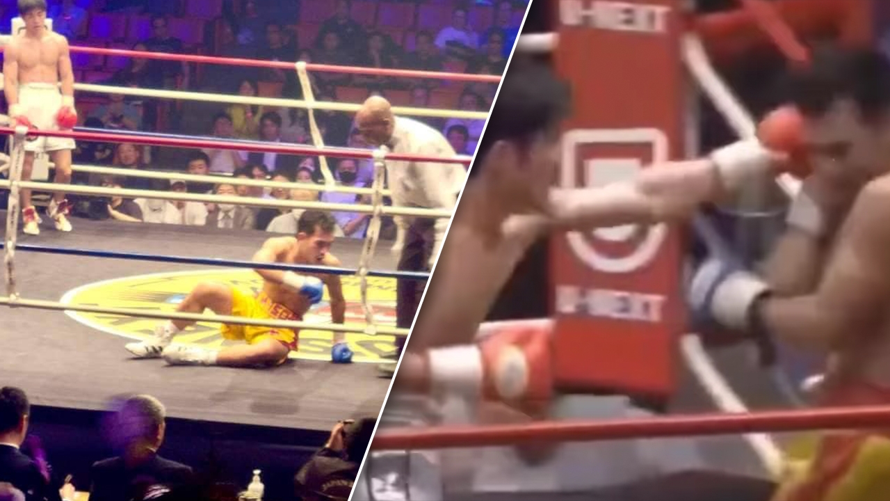 โดนอะไรเข้าไป "นักมวยไทย" แพ้น็อก "นักชกญี่ปุ่น" ยก 7 ศึกมวยสากล พิกัด 128 ปอนด์ (คลิป)
