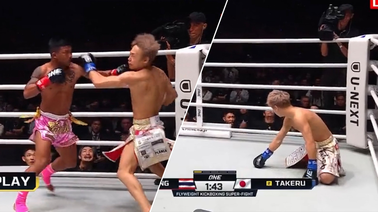 ชมคลิป จังหวะหมัดซ้ายสั่งตายของ "รถถัง" น็อก "ทาเครุ" ร่วงตั้งแต่ยกแรก (คลิป)