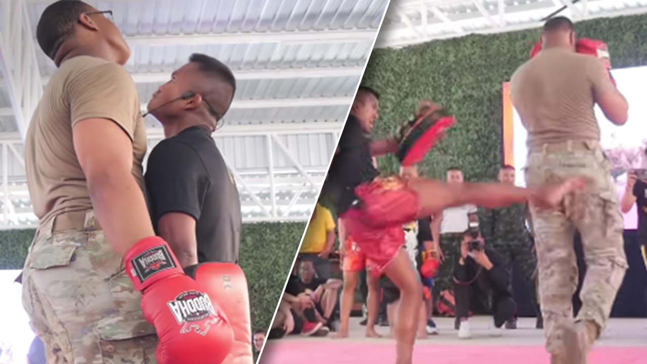 "บัวขาว" ล่อเป้าให้ ทหารสหรัฐฯ เตะ-ต่อย เต็มแรง ก่อนโดน "เตะก้น" คืนจนฮือฮา (คลิป)