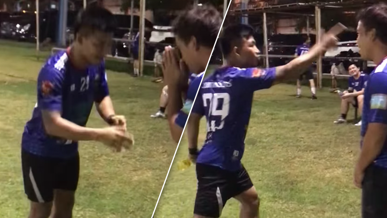 มีง้างหมัดขวา! "รถถัง" สอนบอล "อดีตแข้งทีมชาติไทย" ด้วยประโยคเด็ด จนต้องโค้งคำนับ (คลิป)
