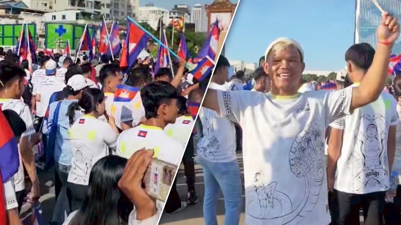 "นักมวยกัมพูชา" ที่เคยชกในไทยนับ 10 ปี เดินขบวนหนุนหลัง "ฮุน มาเนต" ปมข้อพิพาทชายแดนไทย (คลิป)