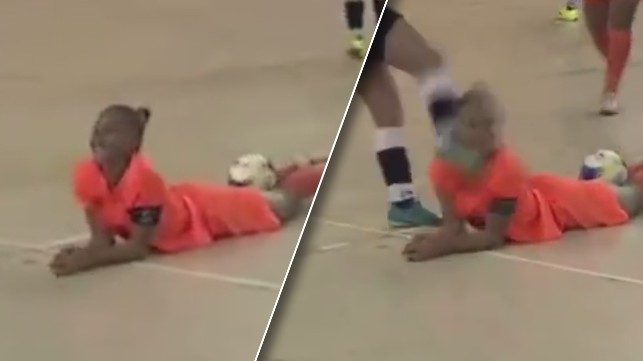 สุดเดือด แข้งฟุตซอลหญิงนอนเยาะเย้ยคู่แข่ง ก่อนโดนหวดโหนกแก้ม (คลิป)