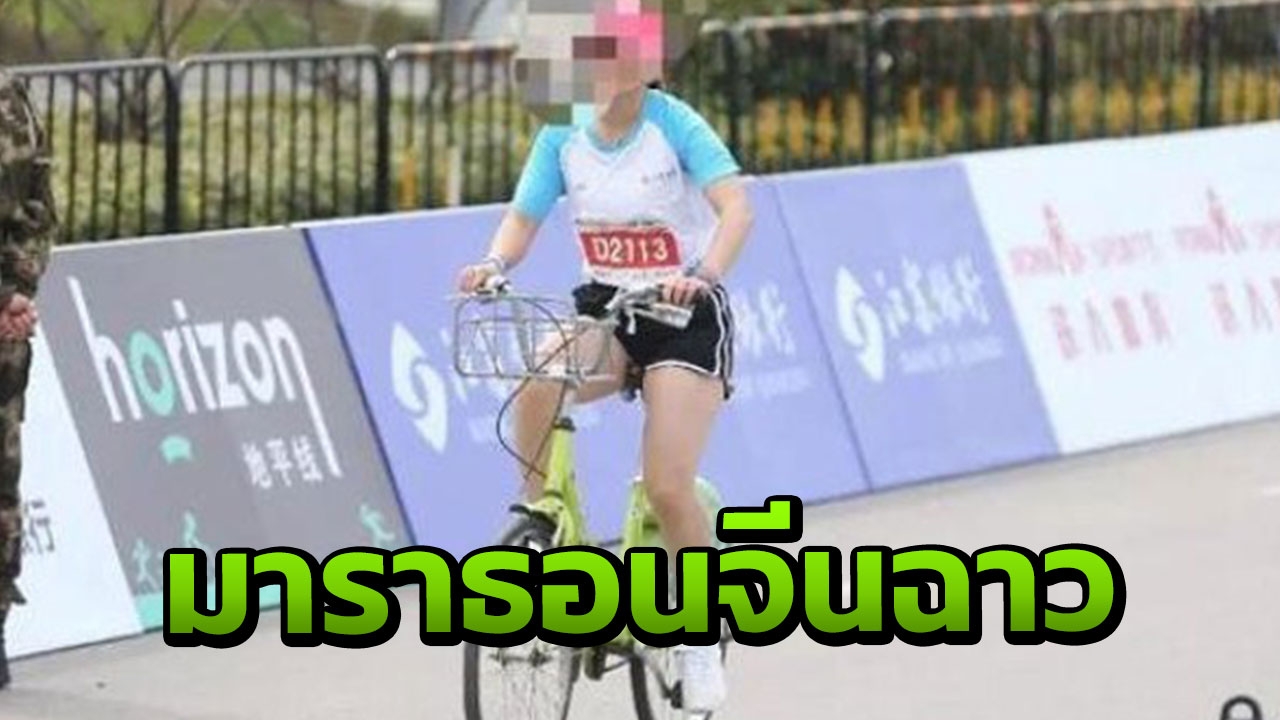 มาราธอนจีนฉาว นักวิ่งแอบปั่นจักรยาน ขโมยน้ำ-กล้วย เก้าอี้หายเรียบ