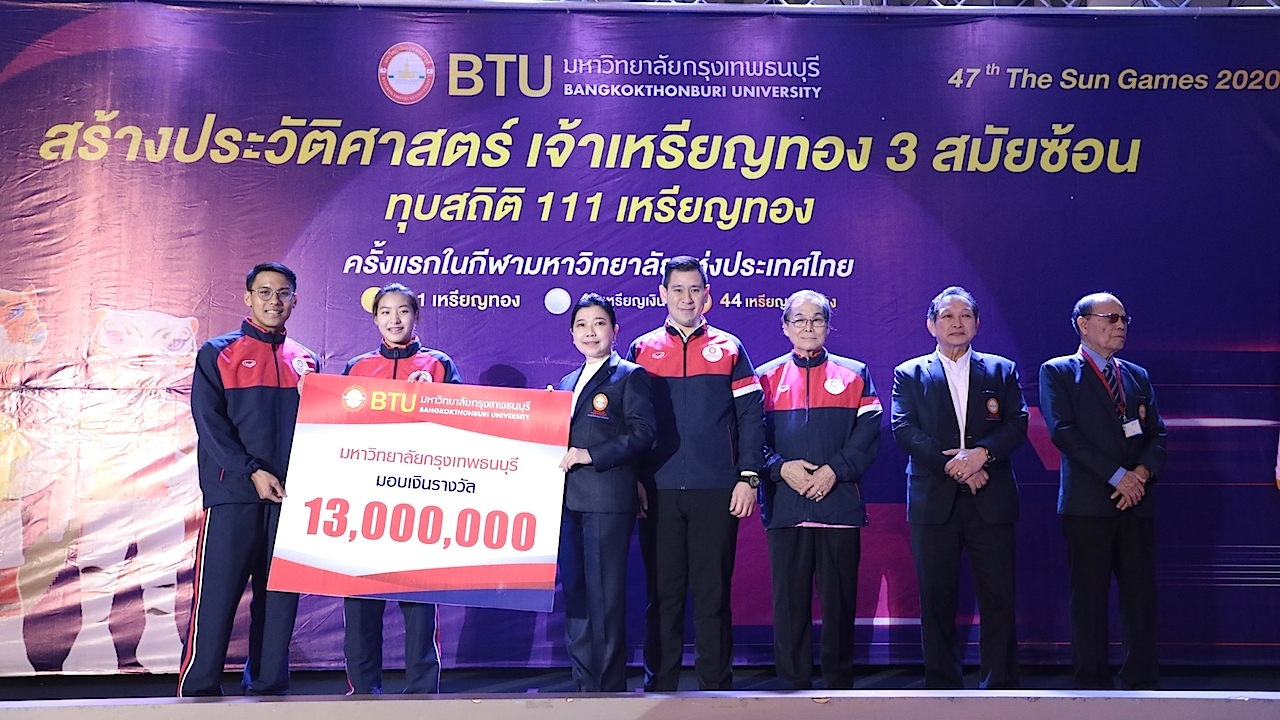 ม.กรุงเทพธนบุรี อัดฉีด 13 ล้านให้ทัพนักกีฬา หลังครองเจ้าเหรียญทองกีฬาปัญญาชน