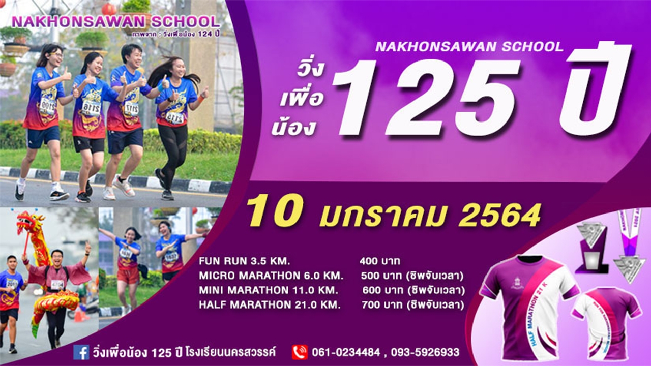 โรงเรียนนครสวรรค์ จัดงานวิ่งเพื่อน้อง 125 ปี ในวันที่ 10 มกราคมปีหน้า