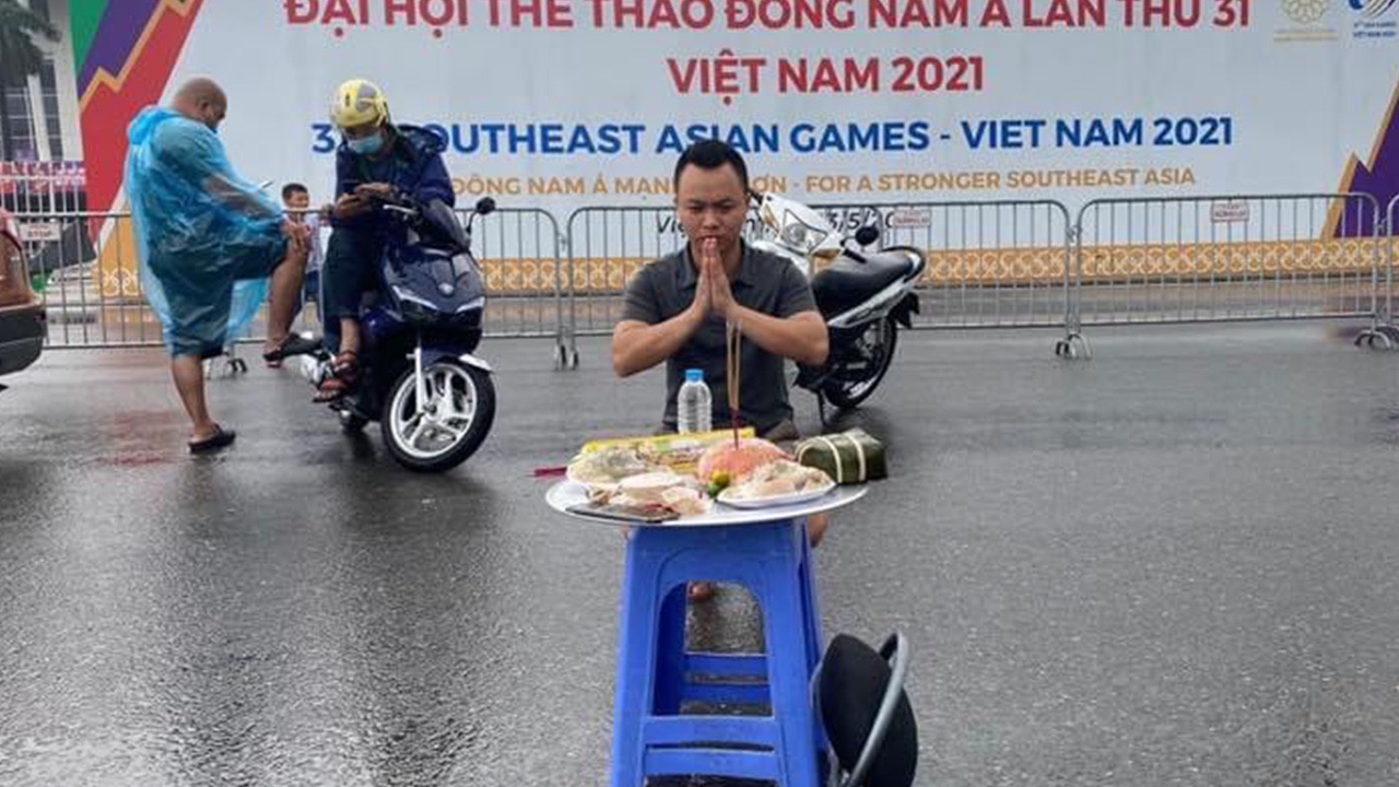มนตร์คาถาต้องมา แฟนเหงียน นำเครื่องเซ่นไหว้ขอฝนหยุดตก นัดชิงบอลชาย ไทย-เวียดนาม