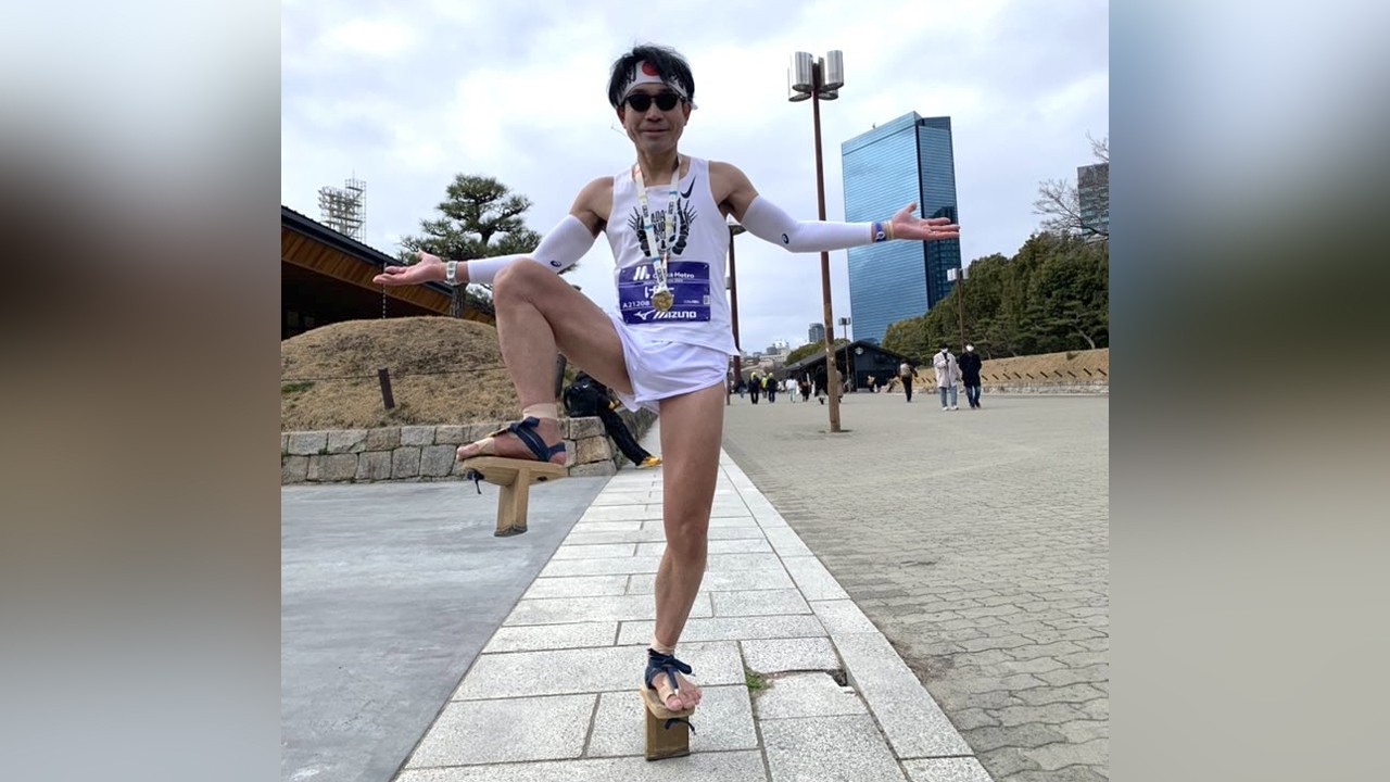 อย่างโหด หนุ่มญี่ปุ่นใส่ "รองเท้าเกี๊ยะ" ลงวิ่งมาราธอน จบเวลาสุดโหด (คลิป)