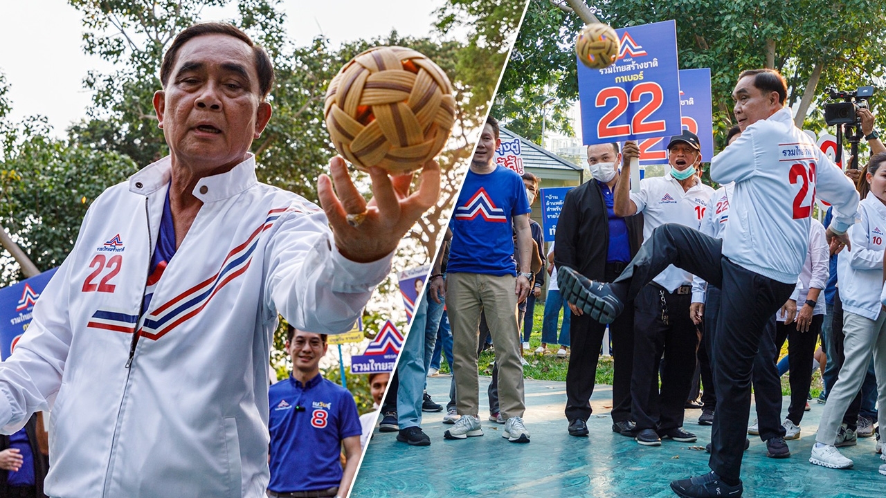 นึกว่าทีมชาติ ชมฝีเท้า "ลุงตู่" โชว์โหม่ง-เตะตะกร้อ หาเสียงเลือกตั้ง-ชาวเน็ตฮือฮา (คลิป)