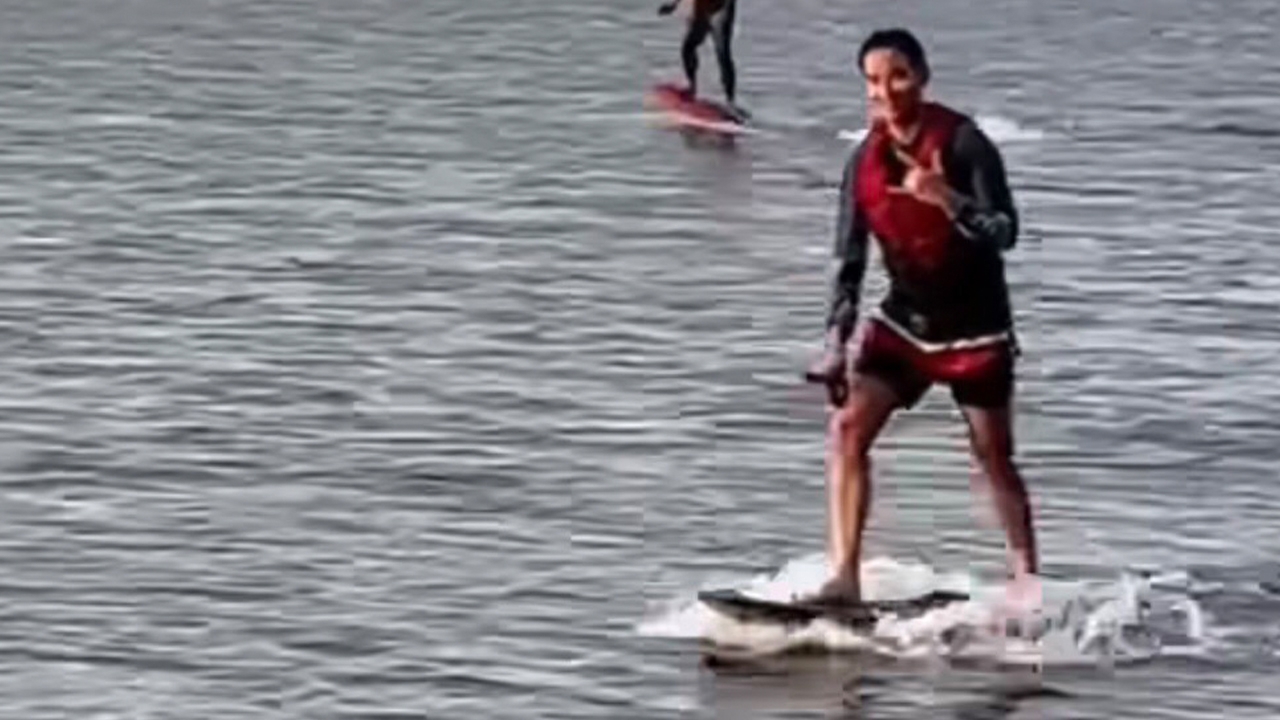 เก่งรอบด้าน "พิธา" เล่นเซิร์ฟบอร์ด ลีลาไม่ธรรมดา ยืนบนน้ำสบายๆ ชิลๆ (คลิป)