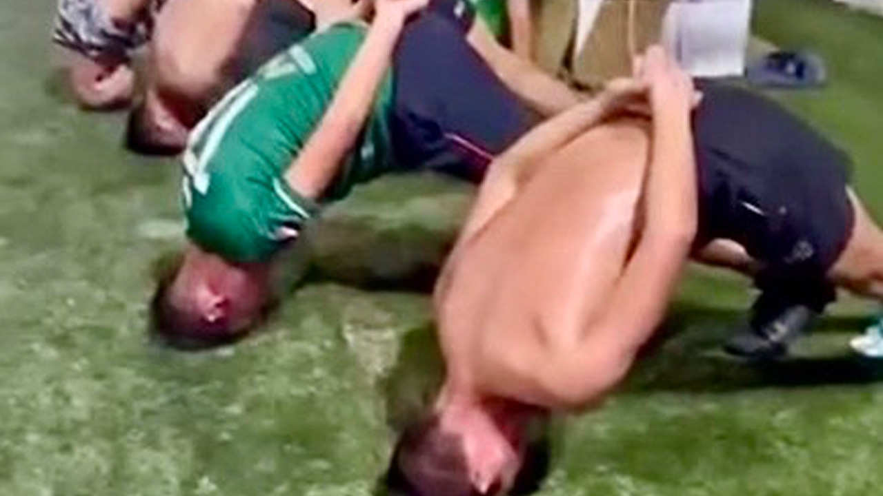 บอลกระชับมิตรที่ไม่กระชับมิตร "สารวัตร" สั่งลูกน้อง "หัวปักพื้น" หลังโดนปะทะในสนาม (คลิป)