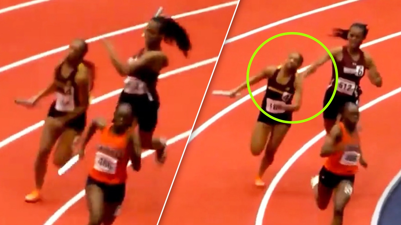 สุดช็อก นักวิ่งผลัด ใช้ไม้ฟาดหัวคู่แข่ง ขณะกำลังแซง (คลิป)