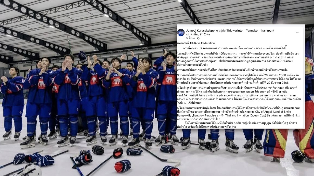 เกิดอะไรขึ้น “เจ้าของลานฮอกกี้น้ำแข็ง” โพสต์โดน “สมาคมฮอกกี้น้ำแข็ง” ส่งหนังสือเชิงข่มขู่-กดดัน