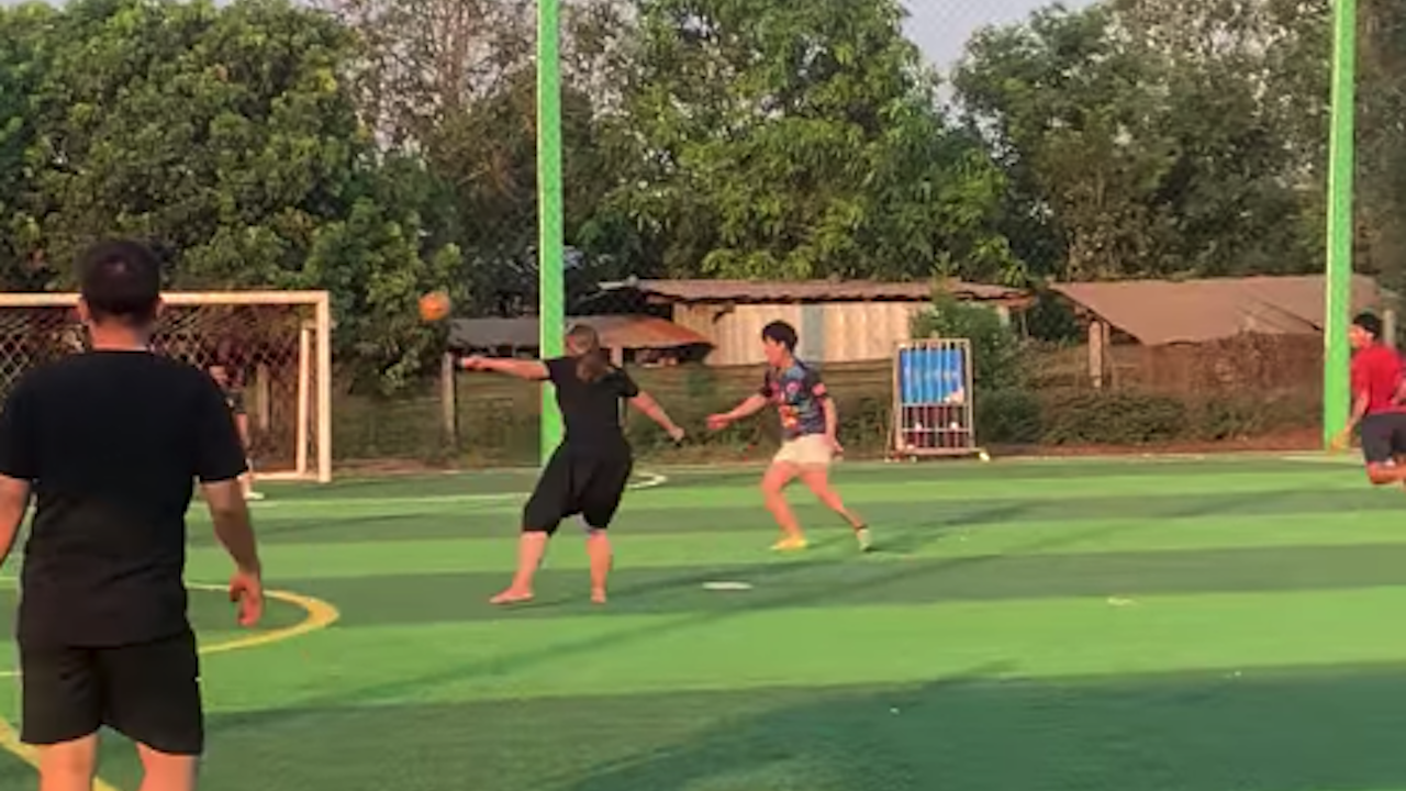 ตะลึงทั้งสนาม สาวไทยยิงประตูด้วยเท้าเปล่า บอลมุดเสียบใต้คานสุดสวย (คลิป)