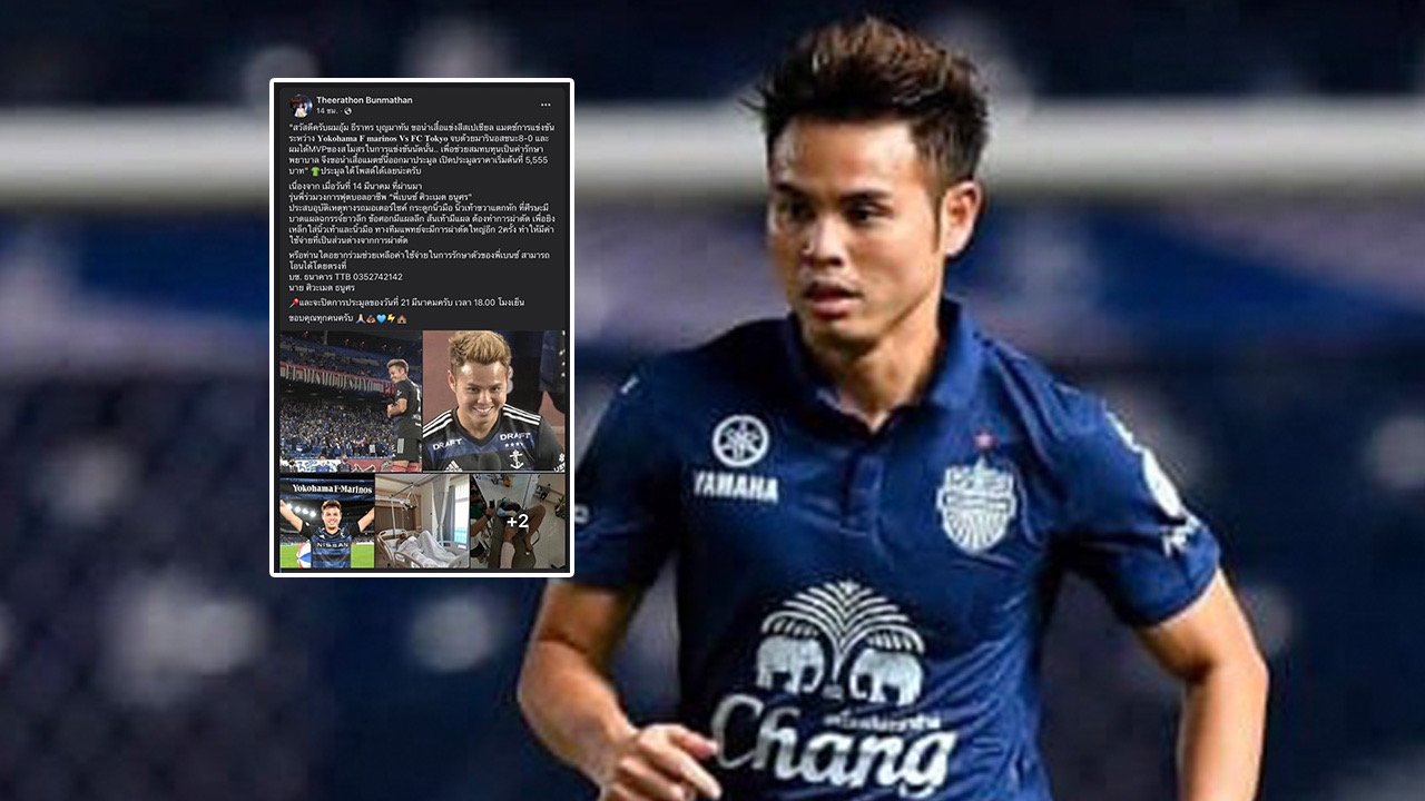 ไม่ทิ้งกัน "ธีราทร" ประมูลเสื้อ "มารินอส" ช่วยแข้งรุ่นพี่ที่ประสบอุบัติเหตุ